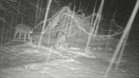 | The Coyotes return a few days later during a snow storm, but there's not much left of the deer |